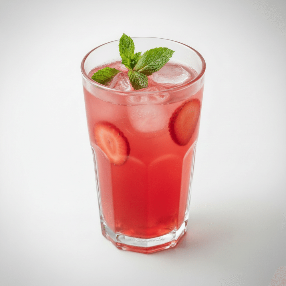 Клубника с/м, клубничный сироп, лаймовый концентрат, сахар, мята св., вода газированная