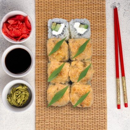 Жареный Ролл Банзай с Угрем и Лососем, 8 шт (240 г)